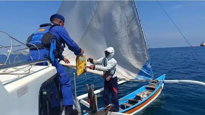 Selain patroli, petugas juga membagikan beras kemasan 5 kilogram kepada nelayan yang sedang mencari ikan, untuk membantu meringankan beban nelayan dalam memenuhi kebutuhan sehari-hari.
