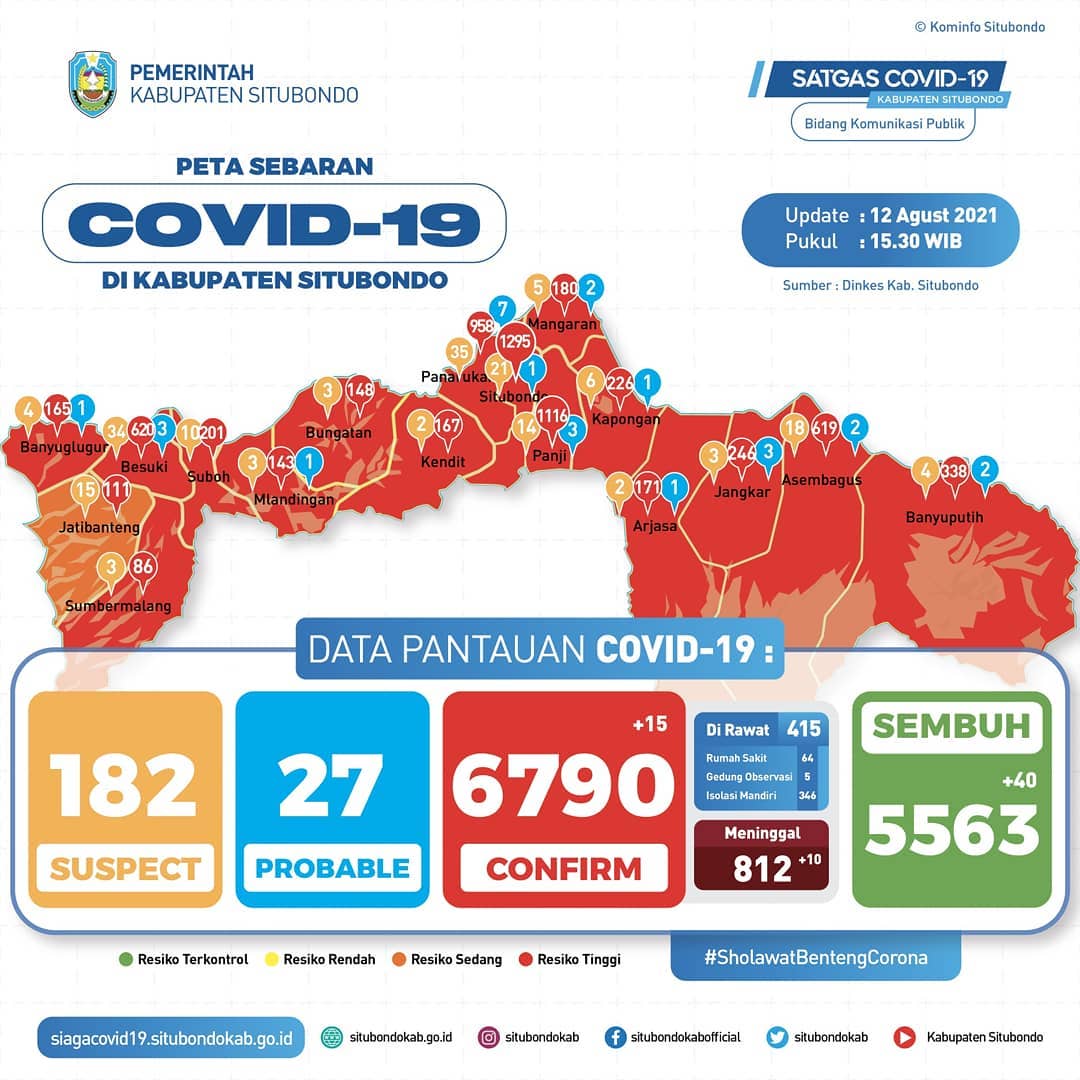 Situbondo- Kembali terjadi lonjakan pasien Covid-19 di Situbondo Jumat, 18 Juni 2021. Berdasarkan data Satgas, ada tambahan 20 pasien baru tersebar di enam Kecamatan. Sebaran terbanyak di Kecamatan Ba...